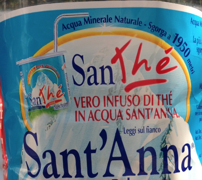 C’è di più: su entrambi i lati, frontale e retro dell’etichetta, si trova un guazzabuglio d’informazioni testuali e visive. La dicitura “San Thé, VERO INFUSO DI THÉ IN ACQUA SANT’ANNA” risulta addirittura più visibile rispetto alla denominazione di vendita “acqua minerale naturale”. Il consumatore può quindi confondersi e non capire se sta comprando acqua minerale o tè.