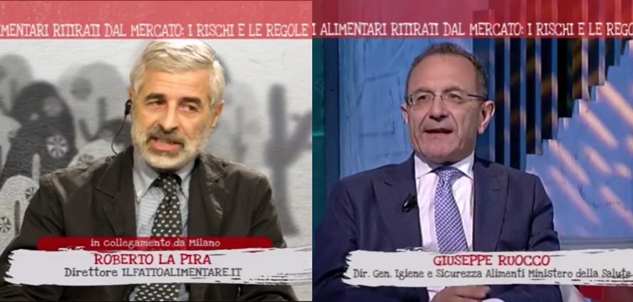 Richiami, ritiri e allerta alimentare. Ne ha parlato nella puntata del 18 ottobre la trasmissione di TV2000 “Attenti al lupo” intitolata “La sicurezza nel piatto”, che ha ospitato il confronto tra Roberto La Pira, direttore de Il Fatto Alimentare, e Giuseppe Ruocco, DG della Direzione generale per l’igiene e la sicurezza degli alimenti e la nutrizione del Ministero della salute.