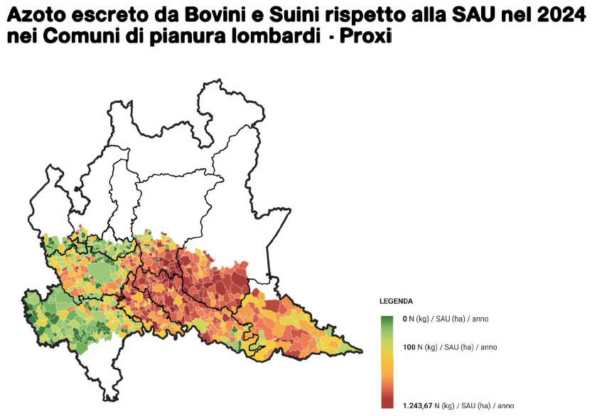 L’eccesso di azoto nel terreno, a sua volta, porta all’inquinamento da nitrati delle acque superficiali e sotterranee e determina il rilascio di ammoniaca nell’aria, precursore del particolato PM2.5: dall’inizio dell’anno, città come Milano e Brescia hanno già registrato oltre 30 giorni con PM2.5 oltre i limiti, superando già nei primi mesi dell’anno i livelli annuali indicati dalle nuove soglie europee. Per queste ragioni, la Lombardia si trova costantemente a rischio sanzioni europee per la violazione della Direttiva Nitrati.