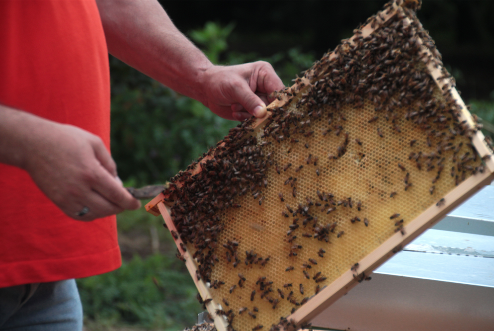 Riccardo Terriaca, direttore di CoNaProA raccoglie l’affumicatore e apre delicatamente una delle arnie. “C.A.R.A. Terra nasce dall’esigenza delle persone di continuare a operare in un territorio ferito da situazioni di carattere ambientale”, dice mentre controlla che gli insetti stiano bene. Ha lo sguardo orgoglioso e parla animatamente della volontà di restituire dignità a una terra martoriata. Con un tentativo di riscatto: provare a invertire il calo di vendite di prodotti agricoli, che ha segnato il boom mediatico sulla Terra dei Fuochi e mostrare, con l’aiuto dei dati raccolti tramite le api, la possibile sicurezza alimentare delle coltivazioni. “Le api sono state scelte perché riescono a monitorare tutti i comparti ambientali: la vegetazione, intercettano le particelle sospese nell’aria, si abbeverano con l’acqua, toccano il suolo – spiega Antonio De Cristofaro, entomologo e direttore scientifico del progetto, mentre indossa la tuta da apicoltore e si avvicina all’alveare –. Attraverso esami chimici mirati, si controllano gli inquinanti che derivano, in particolare, dalla combustione di rifiuti urbani. I due elementi che possono dare una quantificazione sono soprattutto cadmio e piombo. Ma le analisi sono state estese anche altri elementi chimici”.