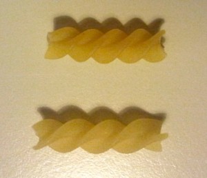 In ogni caso le trafile utilizzate per i prodotto sono sostanzialmente diverse, si noti che anche il passo delle spirali è diverso. Personalmente non credo si tratti di una svista…altrimenti sarebbe veramente grossolana…per Barilla.