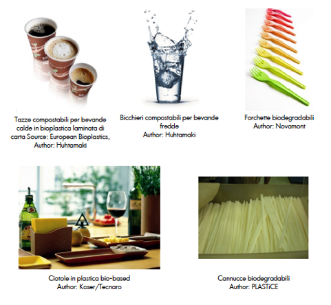 Gli oggetti usa e getta sono spesso impiegati per picnic, eventi all’aria aperta, contenitori di cibo monouso, nei catering e sugli aerei. Essi generano una grande quantità di rifiuti difficili da riciclare perché contaminati dal cibo. Se realizzati in plastica compostabile, possono invece essere smaltiti con i rifiuti organici e convertiti in compost.