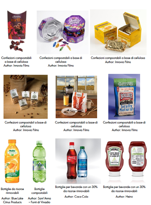 Di seguito alcuni esempi di applicazione in ambito alimentare, in fase di studio o già realizzati e che rendono l’idea delle forti potenzialità del mercato delle bioplastiche.