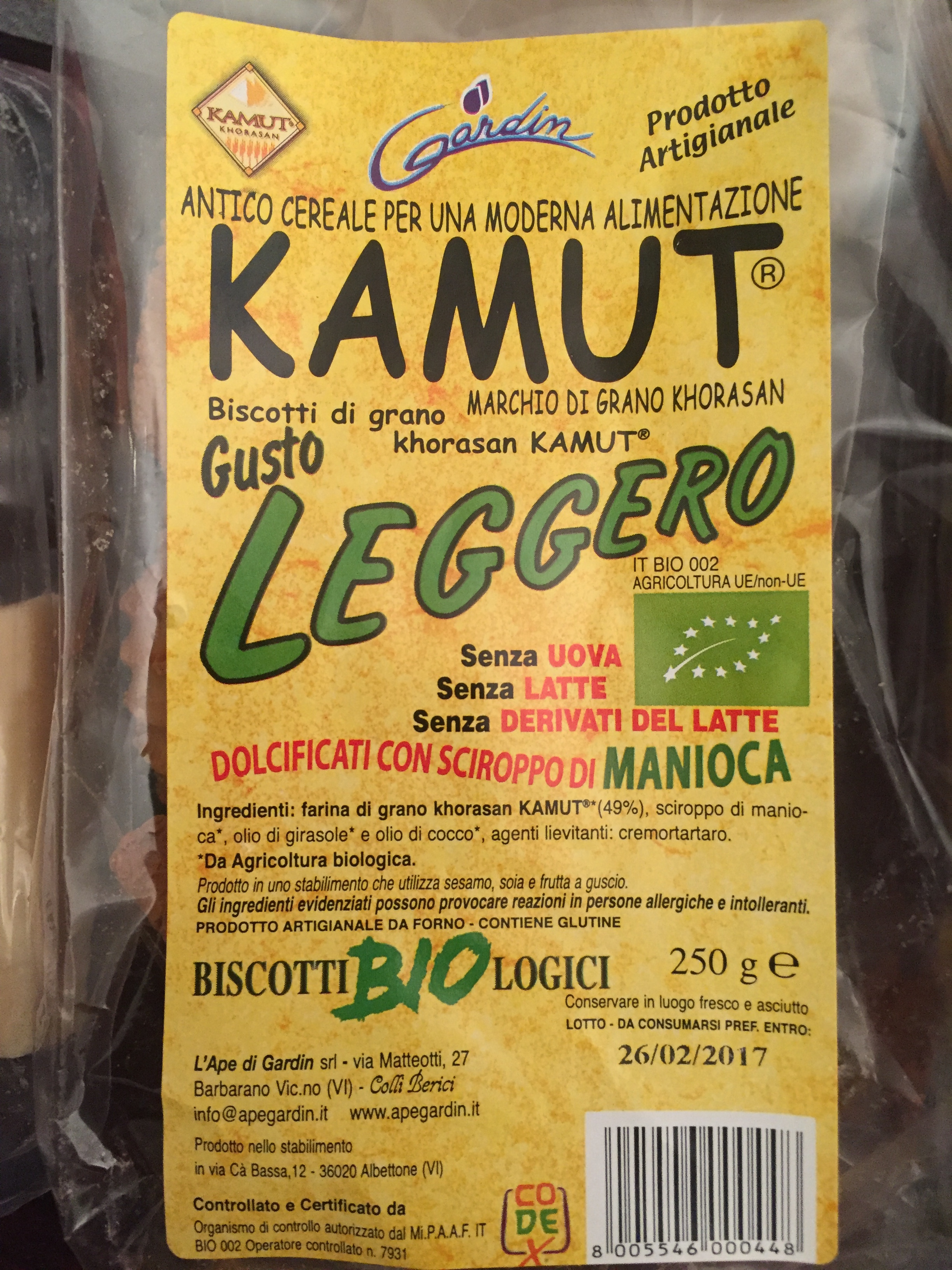 Giorni fa ho comprato da Todi’s un sacchetto di biscotti biologici al kamut, ( vedi fotografia a sinistra). Non ho capito però cosa vuol dire il gusto leggero evidenziato sull’etichetta, forse perché i biscotti sono senza latte e senza uova? Ad assaggiarli sembrano poco dolci, un po’ secchi, però non so, vorrei capire meglio.
