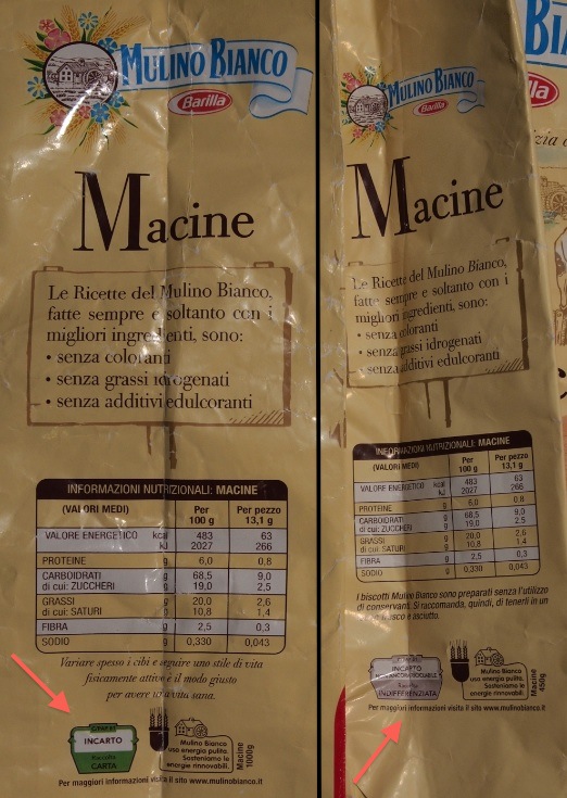 Insomma il sacchetto di biscotti Macine Mulino Bianco Barilla buttiamolo nel sacco nero indifferenziato per non sbagliare.
