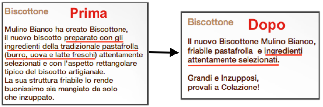 Valentina ipotizza un messaggio ingannevole e ci ha chiesto un parere ritenendo assolutamente scorretta la frase utilizzata da Mulino Bianco. Abbiamo chiesto lumi a Barilla che ha ammesso una certa confusione nel messaggio e ha provveduto immediatamente a cambiare la frase sul sito internet (vedi foto 3).