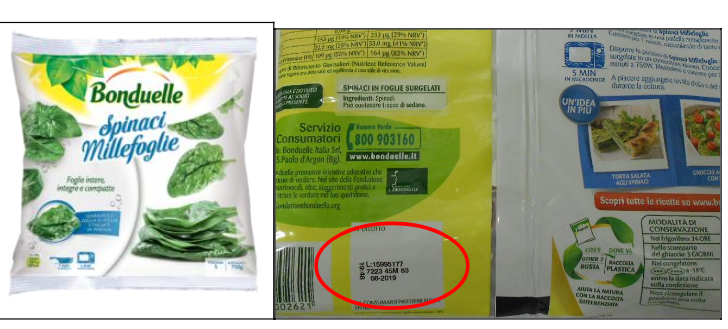 Il ritiro degli Spinaci Millefoglie Bonduelle interessa quattro lotti, non uno come comunicato erroneamente dal Ministero della salute. Più precisamente si tratta di confezioni da 750 grammi vendute in supermercati e ipermercati del nord Italia: Auchan, Simply, Esselunga, Gros Cidac e Pam Panorama. I numeri dei lotti sono: