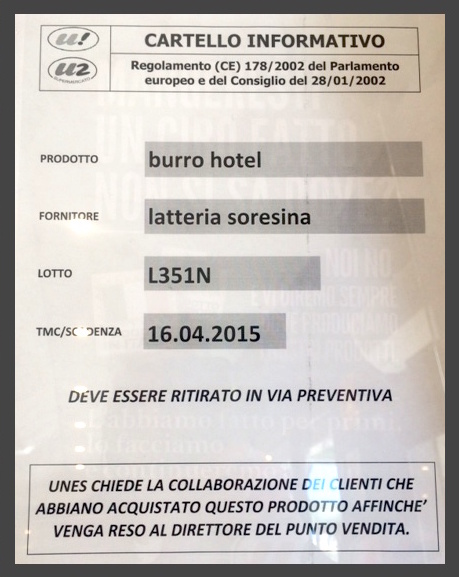Pochi giorni fa abbiamo segnalato in questo sito il ritiro del burro Tigullio in Liguria per un motivo apparentemente simile.