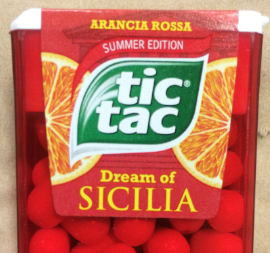 (*) La pubblicità delle caramelle Tic Tac arancia rossa contestata proponeva l’immagine di una grande caramella tagliata a fette come se fosse un’arancia, con gli spicchi del frutto in evidenzia (vedi foto a lato). Anche nella fotografia della scatolina di Tic Tac si vedono le fette di arancia. Basta però leggere l’elenco degli ingredienti per scoprire che la frutta utilizzata è in polvere (arancia rossa e mirtillo rosso americano). Secondo noi è scorretto mostrare immagini che lasciano intendere al consumatore di poter acquistare una caramella all’arancia quando, secondo nostre stime, la frutta in polvere non raggiunge il 2-3%. Secondo la norma la pubblicità non deve trarre in inganno il consumatore, e quando nel messaggio viene citato un ingrediente (arancia rossa), è obbligatorio riportare nell’elenco degli ingredienti la percentuale (cosa che Ferrero non fa). Secondo la normativa la mancanza della percentuale è consentita per gli ingredienti utilizzati in deboli dosi come aromatizzanti.
