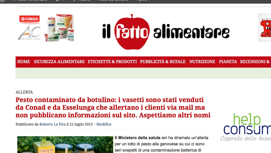 - Quando scatta un’allerta botulino nazionale si dovrebbe fa ben altro. Comprare una pagina intera sui principali quotidiani nazionali ed uscire il giorno dopo informando i lettori e pubblicando le fotografie dei prodotti.