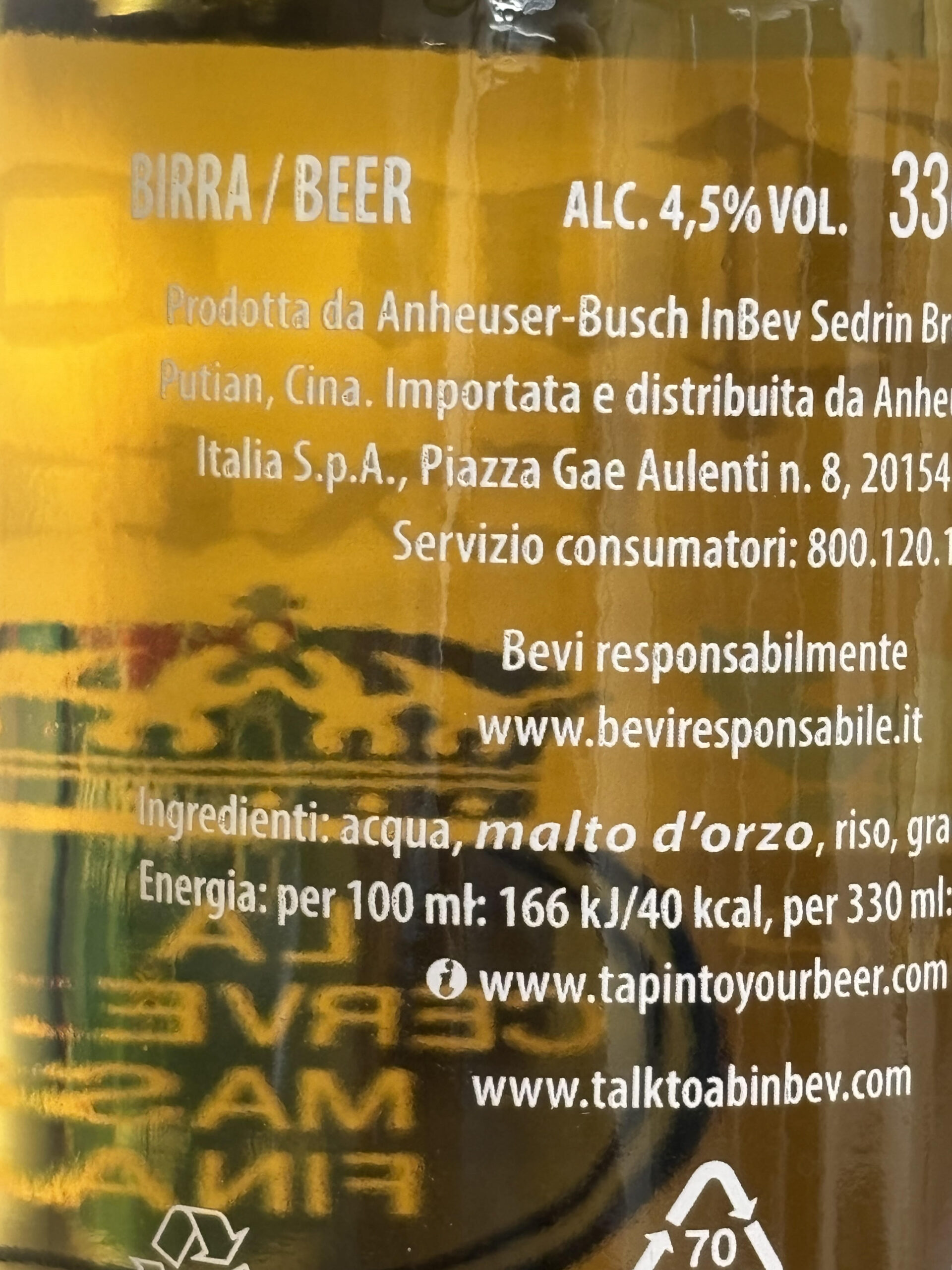 d’altra parte molte birre sono prodotte, per altri marchi, dalla Peroni, anche birre cinesi