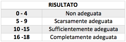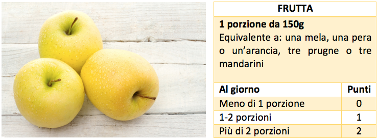Il test comprende nove domande, una per ogni gruppo di alimenti da portare a tavola: frutta, verdura, legumi, cereali, pesce, carne e salumi, latte e derivati, olio d’oliva e alcol. Per ogni domanda sono possibili tre risposte, a ciascuna delle quali viene attribuito un punteggio da zero a due. Sommando i risultati ottenuti si finisce in una delle quattro fasce previste, da “non adeguata” a “completamente adeguata”.