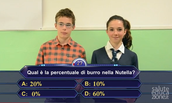 Poi, abbiamo puntato l’obiettivo su zuccheri, sali e grassi in quanto giocano un ruolo fondamentale sulla percezione del gusto e contemporaneamente hanno importanti conseguenze negative sulla salute. Dopo aver imparato a leggere una tabella nutrizionale e una lista ingredienti grazie ad esercizi alla LIM, i ragazzi hanno dovuto indovinare il contenuto in zuccheri di 100 grammi di 8 alimenti da loro molto consumati e conosciuti (Nutella, Kinder Bueno, Vitasnella Cereal Yo, Coca-Cola, EstaThe, Succo di pera Zuegg, Kellogg’s Choco Krave, Milka Bubbly). Al momento di svelare i valori corretti, sono stati fatti approfondimenti anche sul relativo contenuto in grassi e sale, trovando similitudini inattese tra i vari cibi.