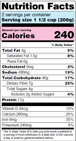 - Il contenuto in zuccheri aggiunti e la percentuale rappresentata dal prodotto rispetto alla quantità giornaliera consigliata. Questo dovrebbe aiutare a distinguere tra gli zuccheri naturalmente presenti e quelli addizionati