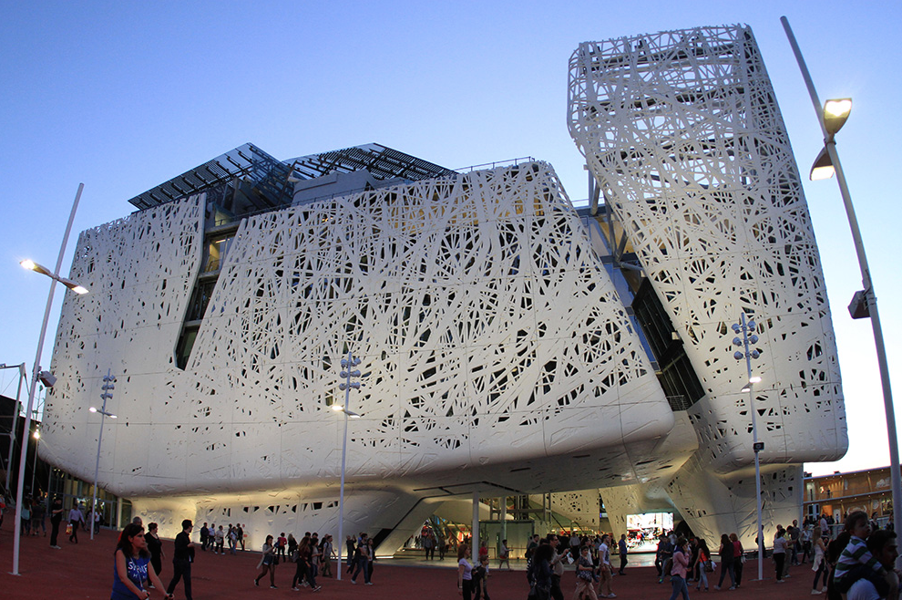 “Orgoglio Italia!” si legge su un grande cubo attorno a cui si snoda una lunga fila di persone in attesa di visitare Palazzo Italia. Prima di entrare, ai visitatori viene spiegato che sono due i messaggi che il nostro paese vuole mandare al mondo: recuperare l’orgoglio italiano e presentare proposte innovative attraverso un viaggio destinato a rivelare l’identità italiana.