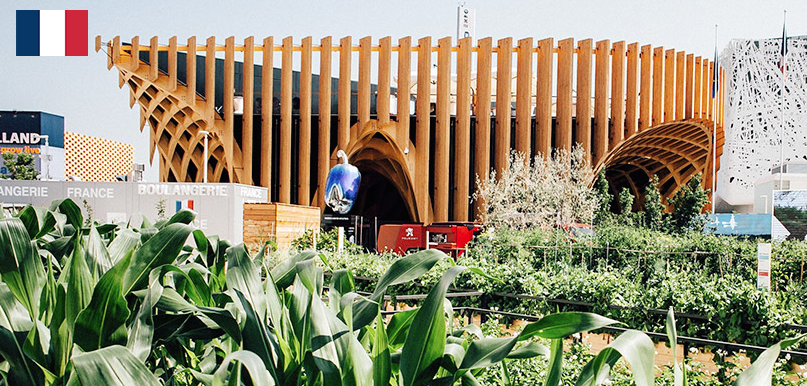 Con le eccezioni positive di Germania, Gran Bretagna e Olanda e il padiglione dell’Ue, gli altri paesi europei seguono il modello italiano, parlando di se stessi, facendo promozione turistica e comunicando ben poco sul tema dell’Expo. Per accedere all’area della Francia bisogna attraversare un orto dove sono esposte le fotografie di Matteo Renzi con il Presidente Francois Hollande e quella del ministro dell’ecologia Ségolène Royal che inaugura il padiglione. Varcato l’ingresso posizionato sotto un soffitto da cui pendono pentole, bottiglie e barattoli, si arriva in una zona dedicata all’acqua dominata da una grande bottiglia di minerale Evian. Proseguendo nella visita si notano due grandi schermi che proiettano lunghi video in francese, con sottotitoli. I temi riguardano la necessità di reinventare l’agricoltura, l’uso di pesticidi, la riduzione degli sprechi, la malnutrizione, l’obesità e la qualità nutrizionale del cibo. Altri video illustrano ricette varie, mentre un’ampia area è dedicata all’impatto ambientale dell’abbigliamento, il che offre l’occasione per un’esposizione storica dell’intimo femminile.