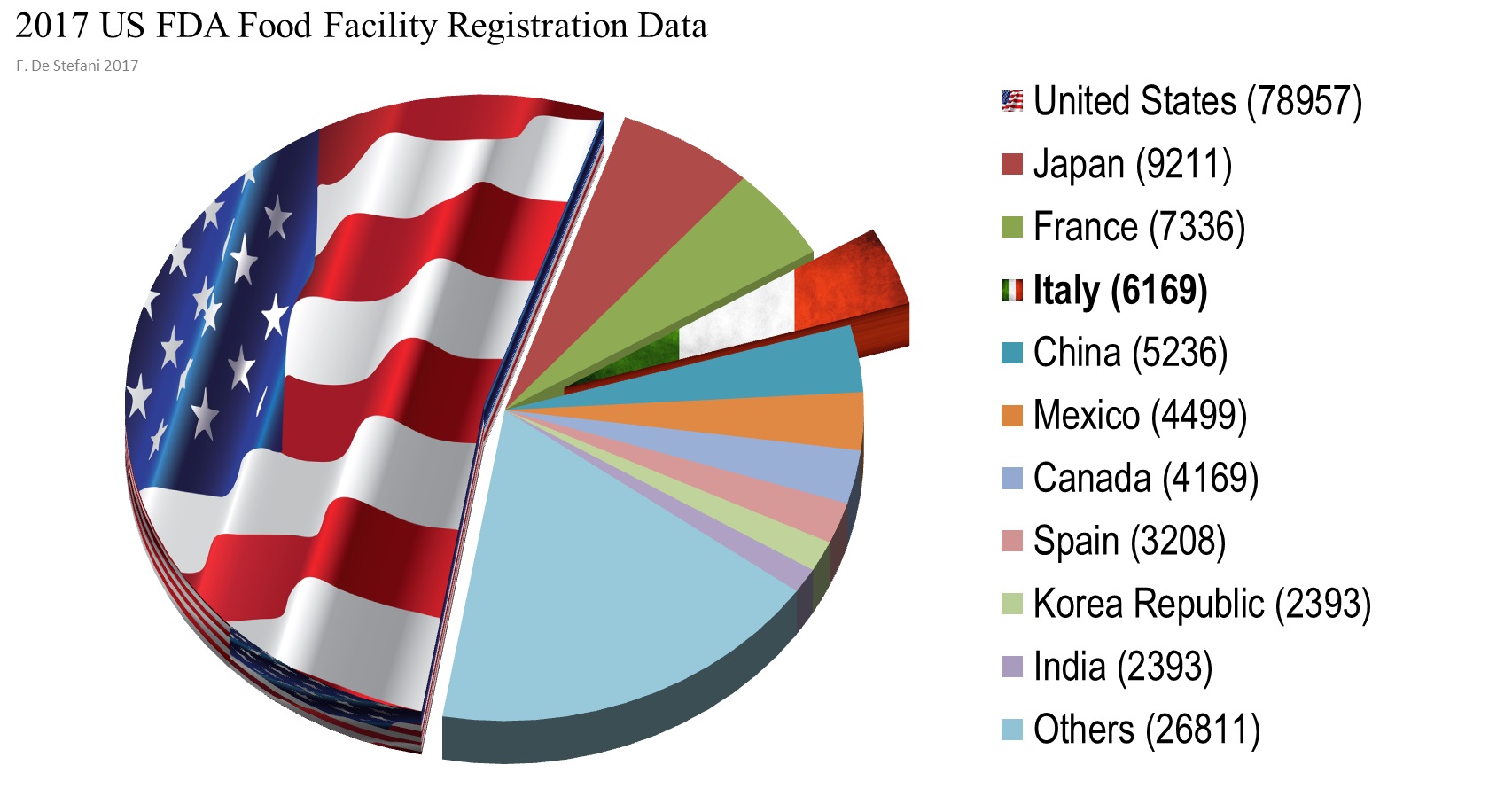 Il 2 febbraio 2017 risultavano registrati 149.933 stabilimenti di imprese alimentari presso la US Food and Drug Administration (FDA), mentre al 1° gennaio 2016 erano 207.653. Si è assistito dunque ad una diminuzione del 28% del numero totale di impianti autorizzati ad operare nel mercato USA.