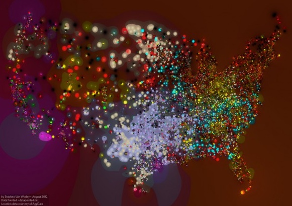 La catena di fast food McDonald in America può contare su una clientela giornaliera di 28 milioni di persone. Stephen Von Worley l’anno scorso ha creato una mappa (vedi cartina sotto) che visualizza oltre 12 mila punti vendita.