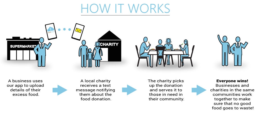FoodCloud, che è un’impresa sociale senza fini di lucro, mette in collegamento innanzitutto i supermercati, le cui scorte sono più gestibili in termini di sicurezza, ma anche i panifici, con le agenzie che distribuiscono cibo ai poveri. Attraverso un’applicazione per gli smartphone di semplice utilizzo, alla fine della giornata i supermercati e i panifici iscritti a FoodCloud possono caricare i dettagli sugli alimenti che intendono donare. Agli enti di beneficenza viene inviato un messaggio di testo a cui, se interessati, possono rispondere e passare poi a ritirare il cibo. Attualmente, FoodCloud facilita la donazione di oltre una tonnellata di eccedenze alimentari al giorno e della sua rete irlandese fanno parte 77 supermercati della catena Tesco, la principale della Gran Bretagna, che ha stipulato con FoodCloud un contratto annuale, che prevede il versamento a FoodCloud di 250.000 euro. Dal prossimo febbraio parteciperanno alla rete di FoodCloud, che ora conta quattro dipendenti, tutti i 146 supermercati Tesco presenti in Irlanda, mentre sono in corso contatti con altre due grandi catene di supermercati.