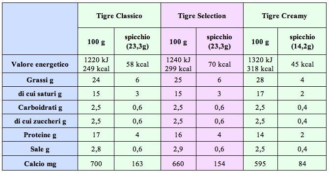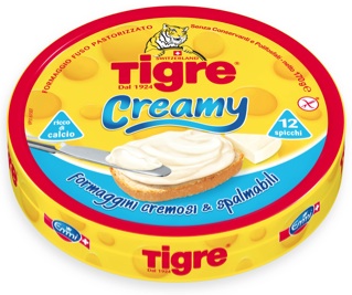 La seconda tipologia dei nuovi Tigre si chiama Creamy, ed è la versione più indicata per i bambini per via del gusto delicato e degli spicchi più piccoli (14g anziché 23g). Completa la gamma Tigre Selection che nella stessa confezione propone tre gusti: all’Emmentaler, al Gruyer e Creamy. Anche in questo caso il formato è da 140g pari a 6 spicchi.