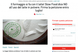 Inoltre dovreste aggiungere nei vostri articoli che la richiesta da parte della commissione europea e’ stata fatta su pressione da una grande industria casearia francese che vuole poter allargare il proprio mercato in Italia anche a formaggi fatti con latte in polvere, questa informazione chiarirebbe di piu’ i motivi della petizione.