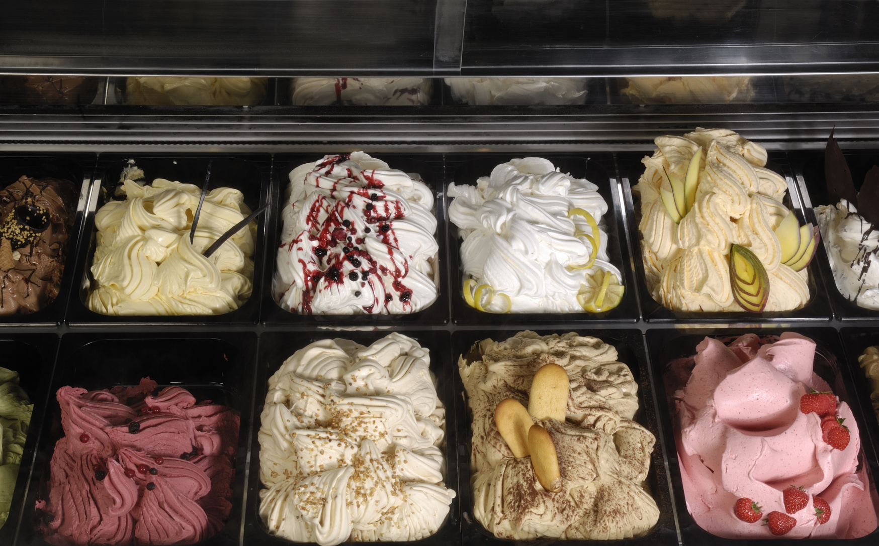 Secondo me il dato interessante è che certe creme – come cioccolato fondente e frutta secca – possono essere preparate senza aggiungere altri grassi oltre a quelli propri del gusto stesso: burro di cacao e grassi di pistacchio, noci, mandorle, nocciole… Ovviamente è opportuno chiedere, perché non succede in tutte le gelaterie.