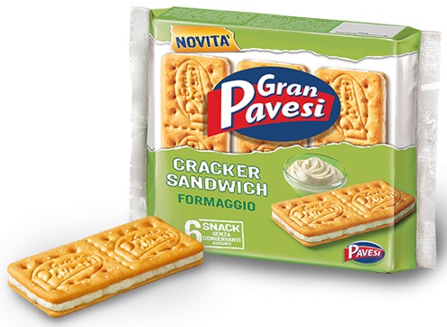 Sandwich è sinonimo di panino o almeno lo era un po’ di anni fa quando le contaminazioni linguistiche che arrivavano dagli Stati Uniti erano poche. Oggi la parola sandwich si usa spesso per tutto ciò che prevede due o più strati con farcitura e il nuovo prodotto di Gran Pavesi in effetti è questo: cracker con in mezzo uno strato di formaggio e altri ingredienti.