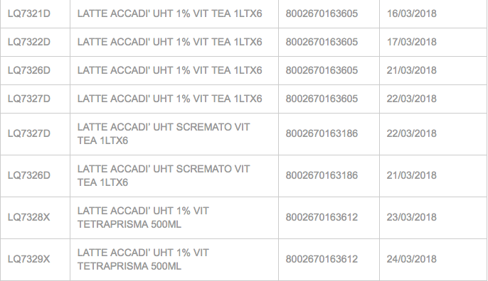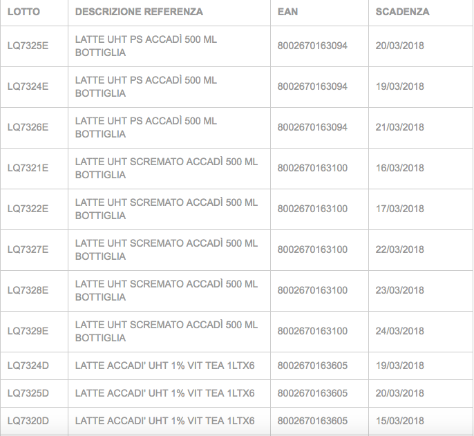 Il provvedimento di ritiro e richiamo ha coinvolto ben 19 lotti di latte venduto in cinque formati e tipologie diversi.