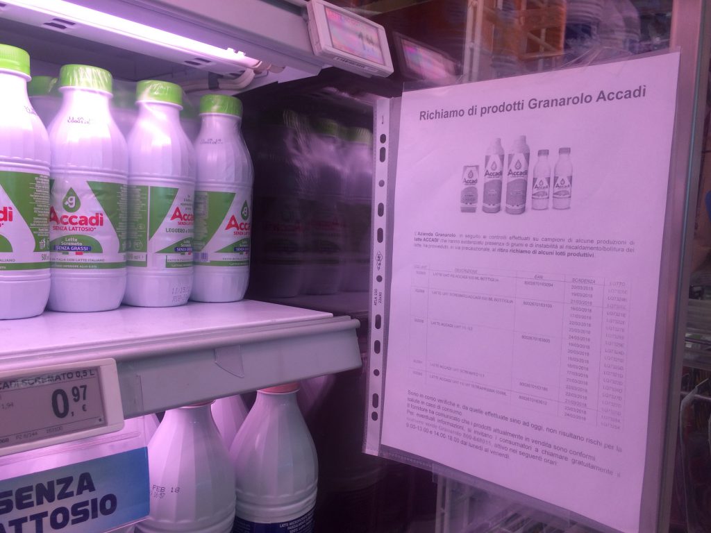 Granarolo ha richiamato in via del tutto precauzionale numerosi lotti di latte senza lattosio Accadì perché, a seguito di controlli a campione, è stata evidenziata la presenza di grumi e di instabilità al riscaldamento e bollitura del latte.