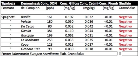 Due delle otto paste prese in esame rientrerebbero nella fascia di premialità massima proposta dall’associazione. Marchi come De Cecco e Granoro, ad esempio, presentano livelli di DON e glifosato tali per cui meriterebbero il valore massimo del premio (5 € a tonnellata). Anche gli altri marchi giudicati negativamente nelle analisi da Granosalus, si collocano comunque a un livello della classifica tale da meritare un premio. Come si spiega allora il giudizio negativo attribuito per prodotti in cui la stessa GranoSalus ha rilevato valori di DON e glifosato compresi nelle fasce di premialità?