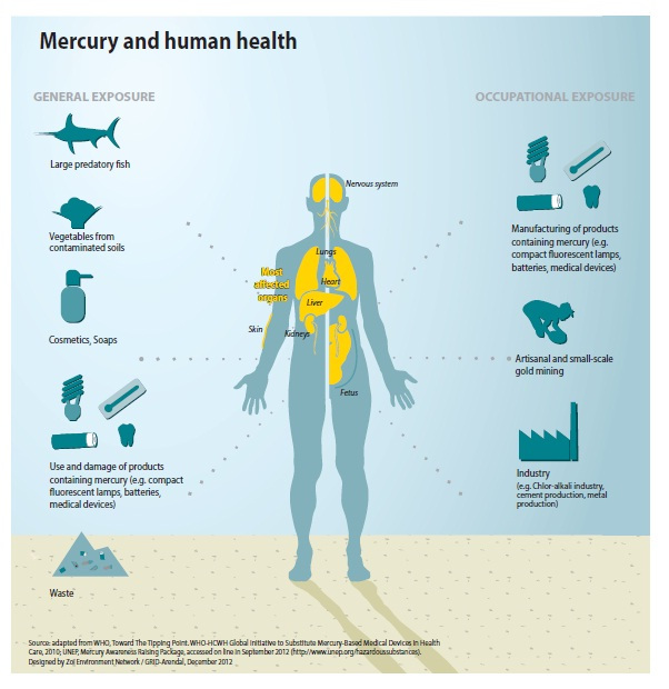 La situazione non è buona, perché il mercurio è ancora ovunque: non solo in oggetti già vietati in alcuni paesi, come le lampadine a fluorescenza, le batterie e le pile, termometri, manometri e sfigmomanometri.Il metallo è presente anche in cosmetici quali mascara e creme, amalgami dentali, lampadine a LED – la cui diffusione è in netto aumento – e altri prodotti di uso quotidiano, nonché in numerose lavorazioni industriali e chimiche. Il risultato è che nel mondo circolano quantità di mercurio enormi, destinate a finire inesorabilmente nella catena alimentare, soprattutto nel pesce. Oltre a ciò, si calcola che non meno di 14 milioni di minatori in 70 paesi siano quotidianamente esposti a piccole quantità del minerale, la cui esposizione è comunque considerata dannosa. Per questo motivo il bando dev’essere globale, con alcune priorità ribadite a Ginevra: