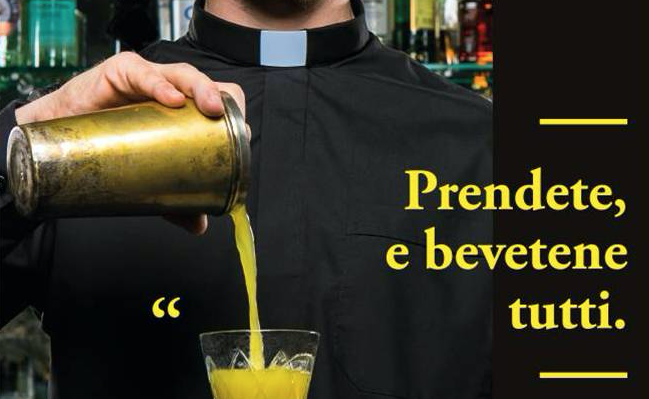 L’Istituto di autodisciplina pubblicitaria ha censurato il messaggio pubblicitario “Prendete, e bevetene tutti” realizzato in occasione dell’evento ‘Roma cocktail week’, diffuso nel giugno 2017 con cartelloni pubblicitari sugli autobus di Roma. Sui cartelloni era rappresentato un uomo in abiti ecclesiastici nero con tanto di collarino bianco, mentre versava un cocktail, insieme allo slogan “Prendete, e bevetene tutti” che riprende il rito eucaristico della liturgia cattolica.