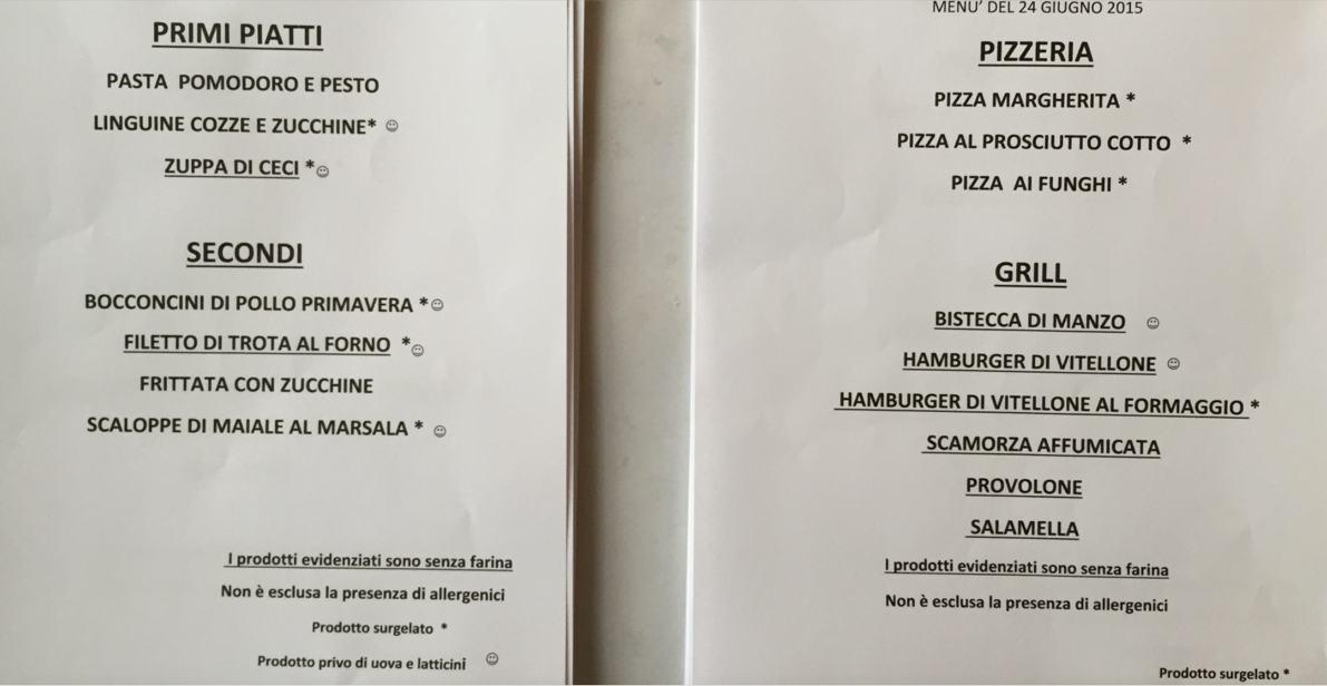 dalle immagini ricevute, si può evincere l’attenzione del gestore della mensa verso i consumatori allergici. Le persone allergiche a uova e latte – ad esempio – possono trarre utili informazioni dalle notizie sull’assenza di latte e lattosio in alcuni dei piatti identificati con precisione.