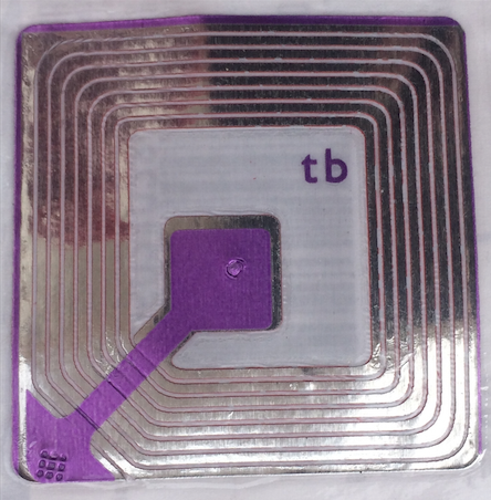 Una semplice etichetta RFID ovvero una piccola antennina che risuona passando tra un campo magnetico e trasmette informazioni come ad esempio il tipo di prodotto, il prezzo ed altro.