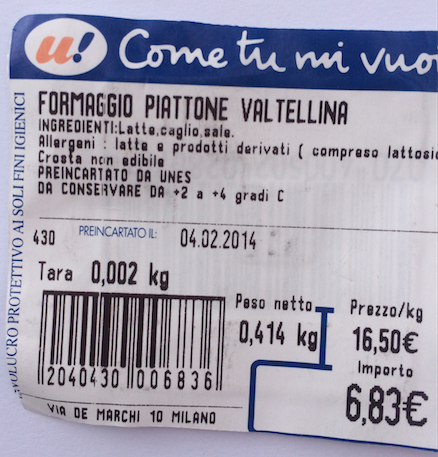 È un’etichetta antitaccheggio, chiama tag EAS (Electronic Article Surveillance) RFID (Radio Frequency IDentification o Identificazione a radio frequenza). L’abbiamo trovata sotto l’etichetta di un formaggio preincartato.