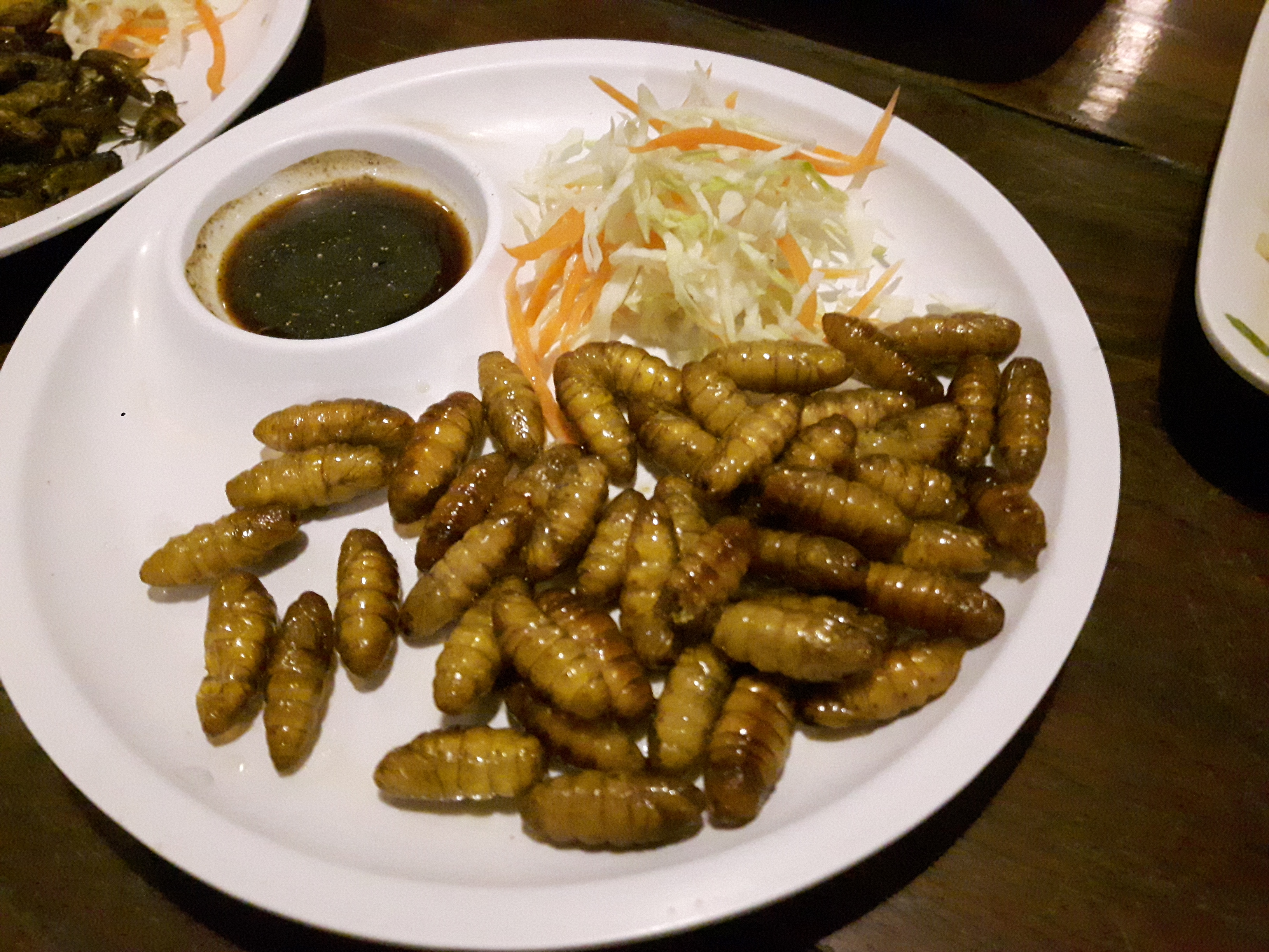 I ristoranti in generale in Thailandia propongono pesce, maiale, pollo, frutti di mare, manzo come fonte di proteine animali. Gli insetti forse fra gli hi-so di Bangkok per la serata trasgressiva una o due volte l’anno come da noi uno che va al ristorante etnico, ma poi per il resto dell’anno ci va giù di carbonara.