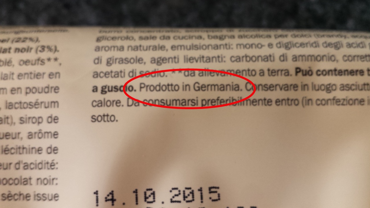 Dunque, in buona sostanza, se la tortina “Firenze” riporta l’indicazione che è stata prodotta in Germania, è formalmente corretta, ma si consiglia di fare molta attenzione a tutto quello che è scritto in etichetta per capirne la reale provenienza.