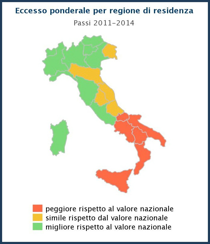 I dati sono forniti dal sistema di sorveglianza Passi (Progressi delle Aziende sanitarie per la salute in Italia), coordinato dall’Istituto superiore di sanità, che osserva come le persone in sovrappeso o obese spesso non si rendono conto. Generalmente, le donne sono più consapevoli del problema rispetto agli uomini. Anche se non sono molte le persone in eccesso ponderale che dichiarano di seguire una dieta dimagrante. Nell’ambito del sistema di sorveglianza Passi, sovrappeso e obesità vengono calcolati in base ai dati riferiti dagli intervistati relativi a peso e altezza. Questo implica la possibilità di una sottostima del fenomeno, perché una forma di autostima induce spesso a aumentare di qualche centimetro l’altezza e a ridurre i chili.