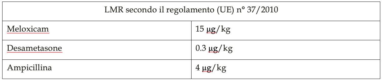 Il regolamento (UE) n°37/2010 fornisce un elenco dettagliato della massima concentrazione ammessa del residuo di una determinata sostanza attiva presente in una alimento. Se l’analisi rileva una concentrazione di una sostanza, che può essere un contaminante chimico, un farmaco o un agro-farmaco, al di sotto dell’LMR indicato da questo regolamento, l’alimento è considerato sicuro e utilizzabile per l’alimentazione umana.