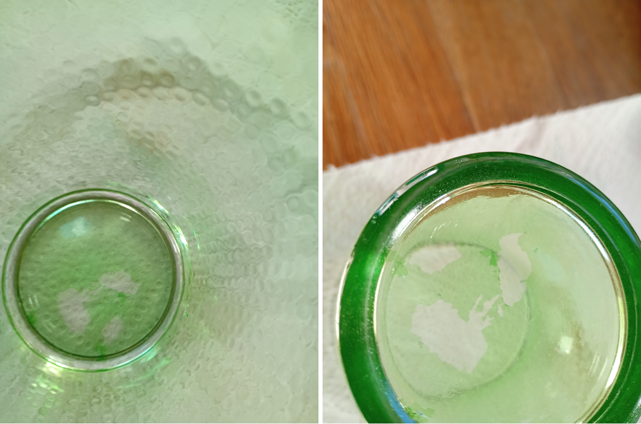 Gentilissima redazione de Il Fatto Alimentare, vi volevo solo segnalare e chiedere se sono sicuri in generale i bicchieri ‘verniciati’, che sembrano di vetro colorato ma poi in realtà presentano della pellicola che si stacca. Questa mattina mi è successo con dei bicchieri Tognana acquistati in un punto vendita Lidl. Ma basta cercare online e usciranno diverse segnalazioni di casi analoghi… Vi allego alcune foto. Spero queste sostanze che si staccano non facciano male alla salute. I bicchieri li butterò…