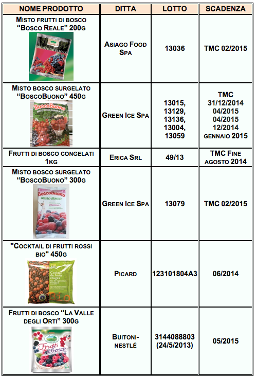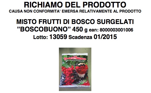 Il 16 ottobre 2013 Auchan riceve una lettera (vedi sotto) da parte dell’azienda Green Ice che invita a ritirare dagli scaffali i frutti di bosco surgelati “Bosco Buono” (lotto numero 13059 con termine minimo di conservazione gennaio 2015) perché contaminato dal virus dell’epatite A.