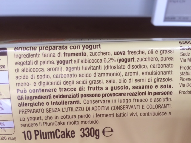 Sabato 23 luglio, in un supermercato Esselunga di Monza, ho acquistato una confezione promozionale di Plum Cake Mulino Bianco (due confezioni da 10 plum cake tenute insieme da una fascia adesiva) ad un prezzo scontato (tre euro invece di quattro euro).