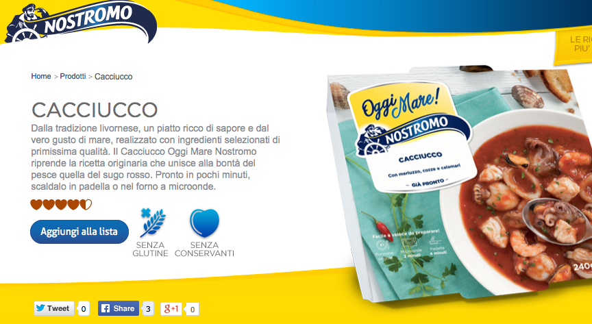 Il giorno 8 agosto la società Nostromo ha ritirato dal mercato tre lotti del Cacciucco, un piatto pronto che fa parte della linea Oggi Mare!, perché l’etichetta era sbagliata. Nell’elenco degli ingredienti mancava l’indicazione dei gamberetti, che sono un elemento importante della ricetta, tanto da essere fotografati in primo piano sulla confezione.