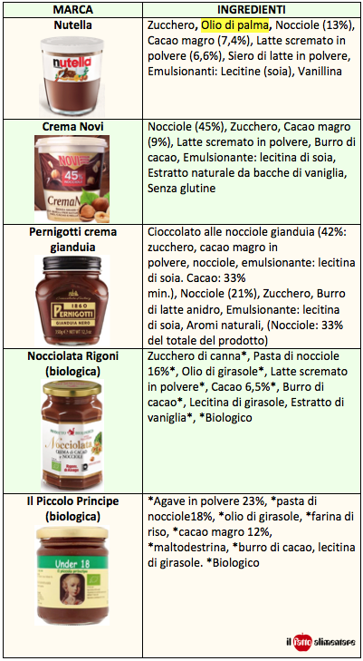 Vado spesso all’Esselunga e all’IperCoop qui a Milano città ma non ho MAI visto le tre creme che lei nomina, e non le nascondo che un assaggino lo farei volentieri, visto che non acquisto prodotti che grondano grasso di palma. Giusta quindi la scelta di fare riferimento solo ai prodotti più diffusi, tralasciando quelli “esoterici”.