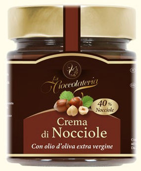 La Cioccolateria, Crema spalmabile alla Nocciola. Ingredienti: Pasta nocciola, zucchero di canna, latte in polvere magro, cacao magro, olio extra vergine d’oliva. Emulsionante: Lecitina di soia. |