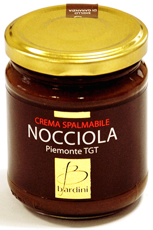 Bardini Cioccolaterie, Crema spalmabile Nocciola Piemonte Igp. Ingredienti: Pasta di nocciole TGT (56%min), zucchero, cacao in polvere, massa di cacao, olio di nocciola, burro di cacao, lecitina di soia non OGM. |