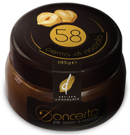 Pura Delizia, Concerto 58 spremuta di nocciola. Ingredienti sono nocciole Piemonte IGP (58%), zucchero, polvere di cacao Ecuador e lecitina di soia OGM FREE. |
