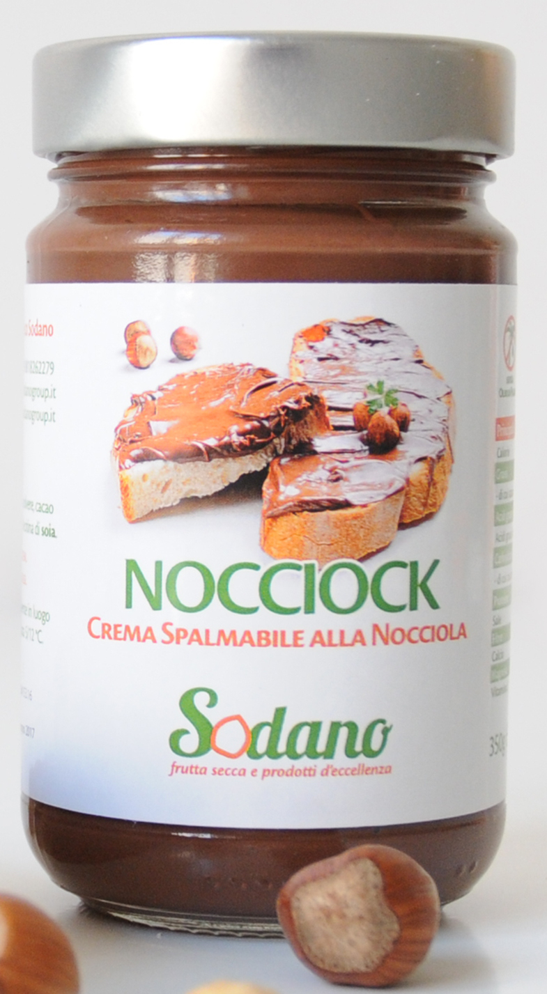 Sodano, Crema spalmabile alla nocciola. Ingredienti: Zucchero, nocciole (14%), latte in polvere, cacao in polvere, olio di semi di girasole, lecitina di soia |