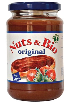 Probios, Nuts&Bio Original, crema a base nocciole e cacao. Ingredienti: *zucchero di canna grezzo , *olio di semi di girasole spremuto a freddo , *nocciole , *latte in polvere , *cacao in polvere. *da agricoltura biologica. |
