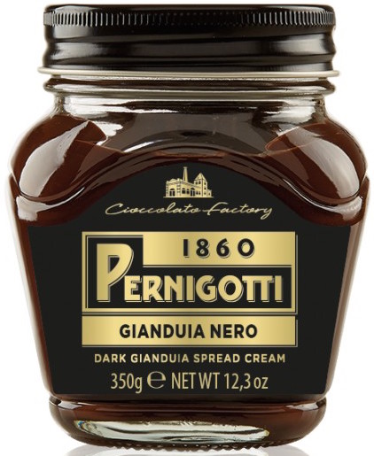 Pernigotti, Gianduia nero, crema gianduia fondente da spalmare. Ingredienti: cioccolato alle nocciole gianduia (42%: zucchero, cacao magro in polvere, nocciole, emulsionante: lecitina di soia. Cacao: 33% min.), nocciole (21%), zucchero, burro di latte anidro, emulsionante: lecitina di soia, aromi naturali. (Nocciole: 33% del totale del prodotto). |